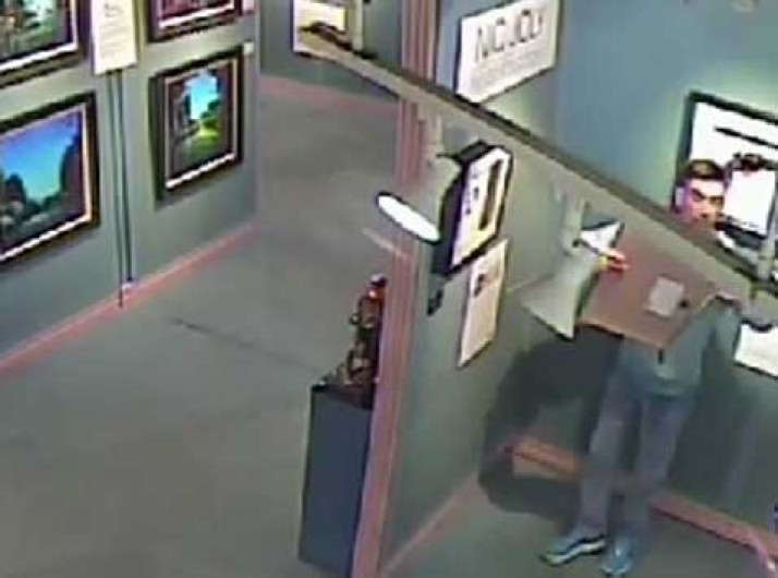 No Reino Unido, câmera flagra ladrão tentando esconder quadro em casaco
