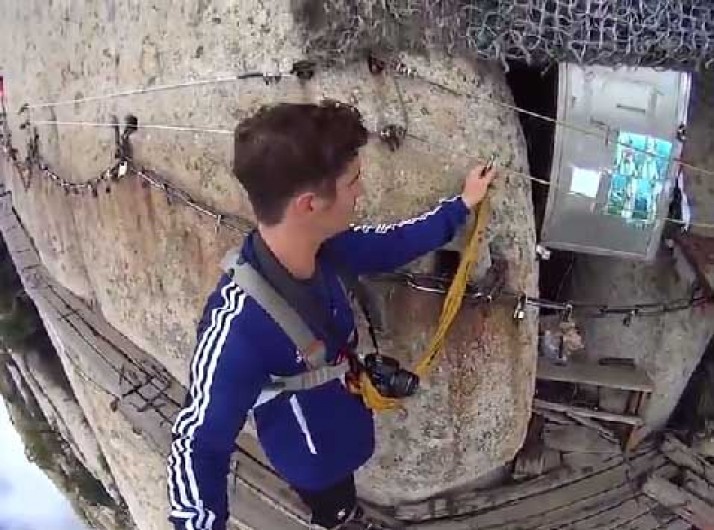 Corajoso, homem anda em passarela de 33 cm de largura na China