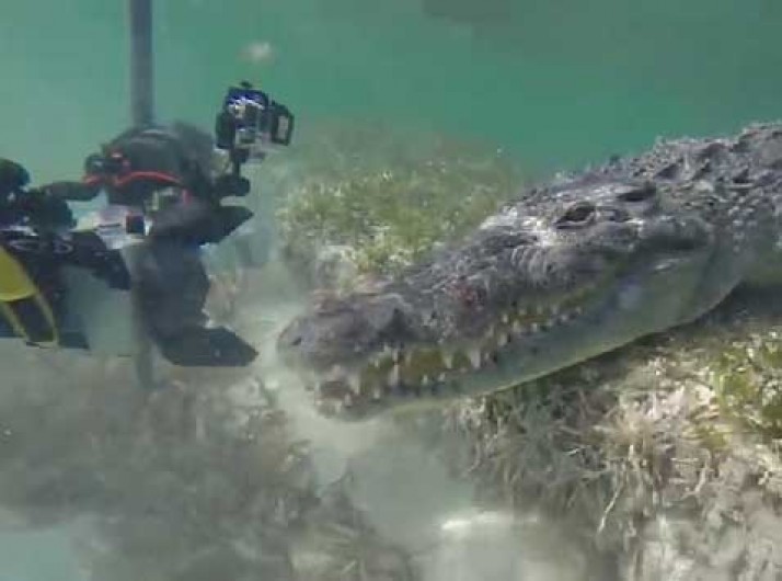Mergulhador fica cara a cara com crocodilo no México