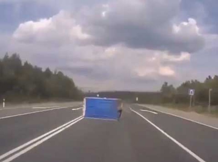 Carro bate em banheiro químico jogado na estrada