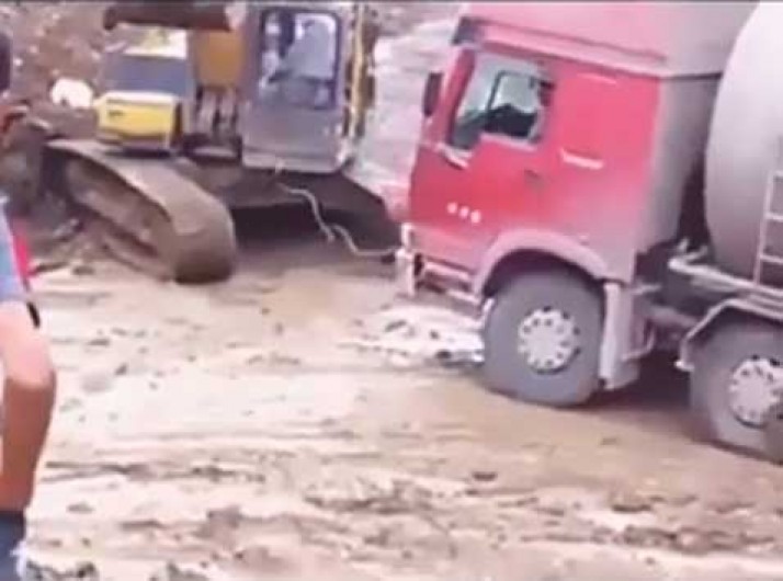 Tentaram rebocar o caminhão, mas não deu nada certo