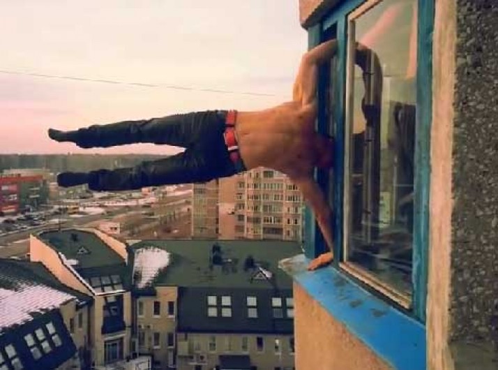 Incrível: russo se arrisca em acrobacias ao ar livre