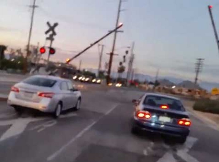 Engraçadinho buzina como trem para assustar os outros motoristas