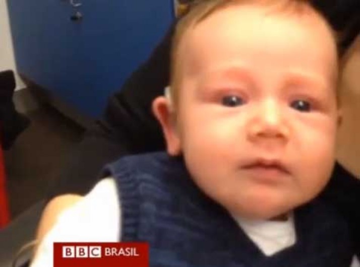 Bebê que nasceu surdo ouve pela 1ª vez com sete semanas de vida