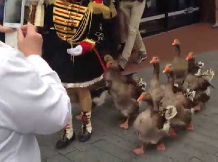 Gansos marcham em desfile na Holanda