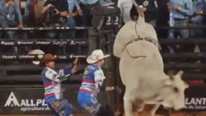 Peão é atingido por touro no Rodeio Internacional em Barretos e é socorrido; veja