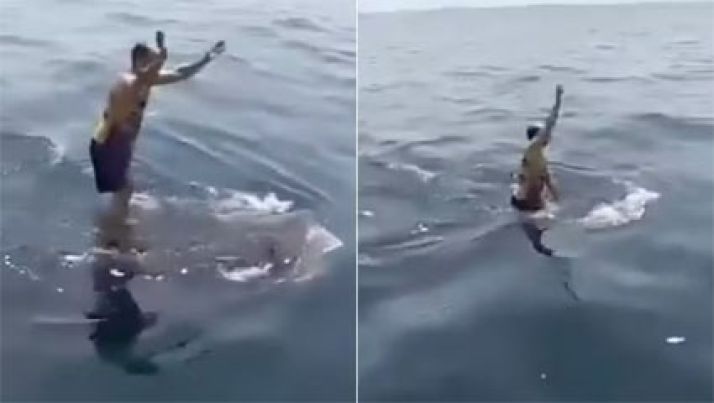 Homem viraliza ao pular em cima de tubarão-baleia e 'surfar' no animal; veja