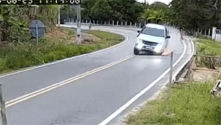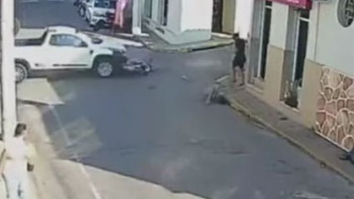 Flagra: Motoqueiro é atropelado e cai de cabeça em bueiro; veja