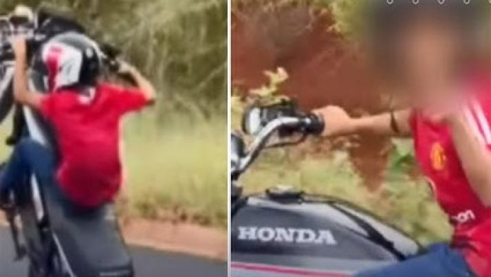 Menino de 10 anos faz manobras perigosas de moto e pai filma; veja