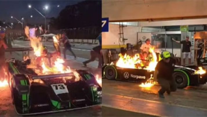 Piloto sai de carro em chamas enquanto veículo era abastecido durante corrida no Paraná; veja