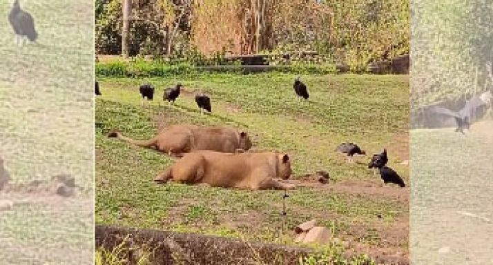 Leoa viraliza ao ser flagrada capturando urubu em zoológico de São Paulo; veja o momento