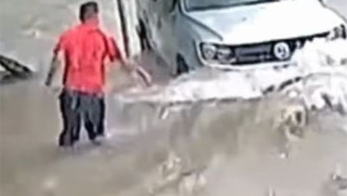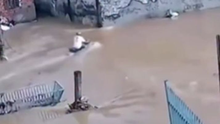 Desesperador: Motociclista é 'engolido' por buraco após tentar atravessar enxurrada