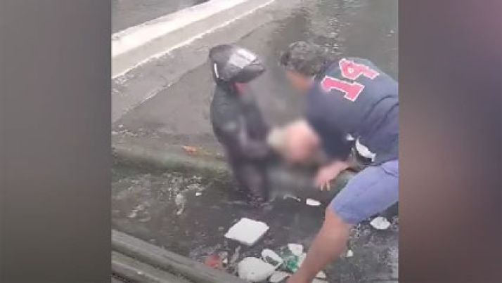 Moradores salvam idoso após queda em canal durante enchente em Santos; veja