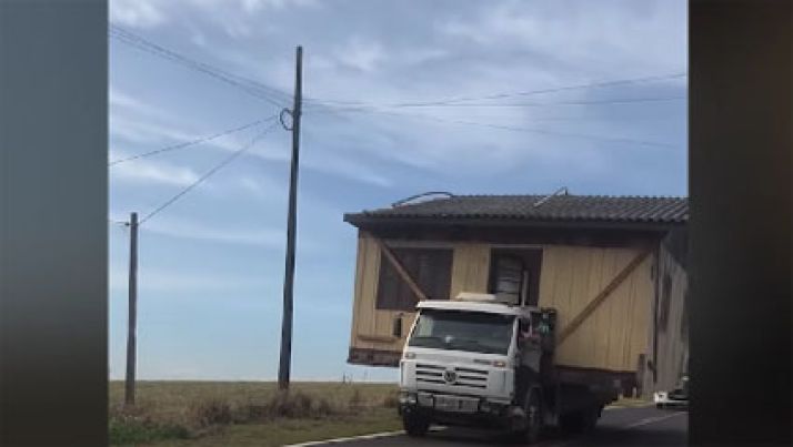 Caminhoneiro é flagrado transportando casa de madeira inteira no Paraná; veja