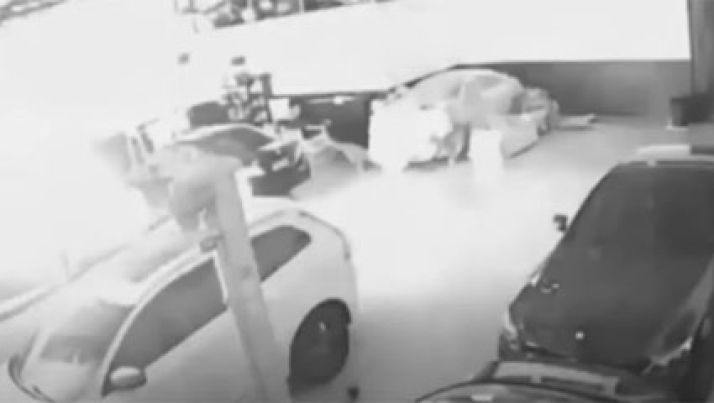 Flagra: Raio atinge carro de luxo e provoca incêndio em oficina