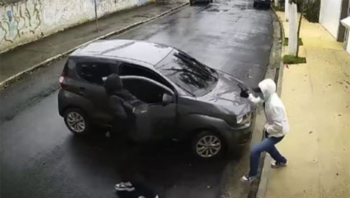Câmera flagra assalto a família em carro estacionado na rua; veja