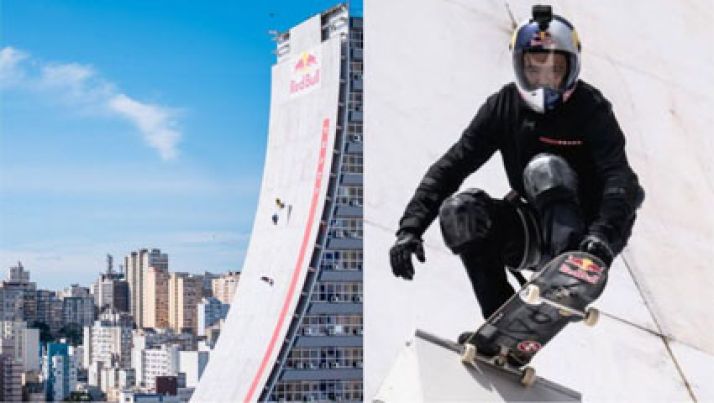 Skatista Mineirinho bate recorde ao descer megarrampa de prédio a 70 metros; veja