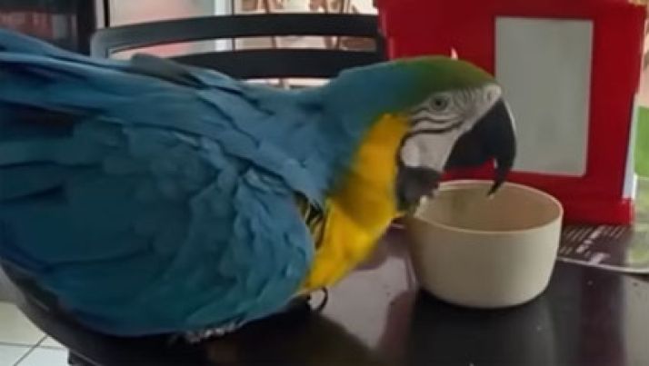 Arara-canindé é flagrada tomando café da manhã em padaria em Rondonópolis; veja
