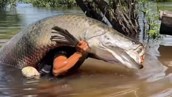 Sobrinhas mostram pirarucu de 100kg capturado pelo tio na Amazônia; veja