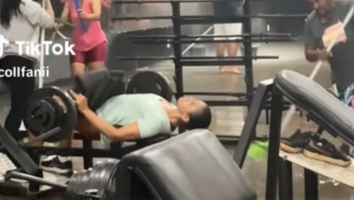 Focada total! mulher mantém treino enquanto academia alaga e viraliza; veja