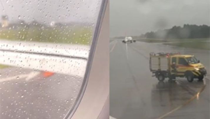 Decolagem é interrompida após turbina de avião pegar fogo em SC; veja