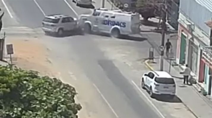 Câmera de segurança mostra momento em que Hilux bate em lateral de carro-forte
