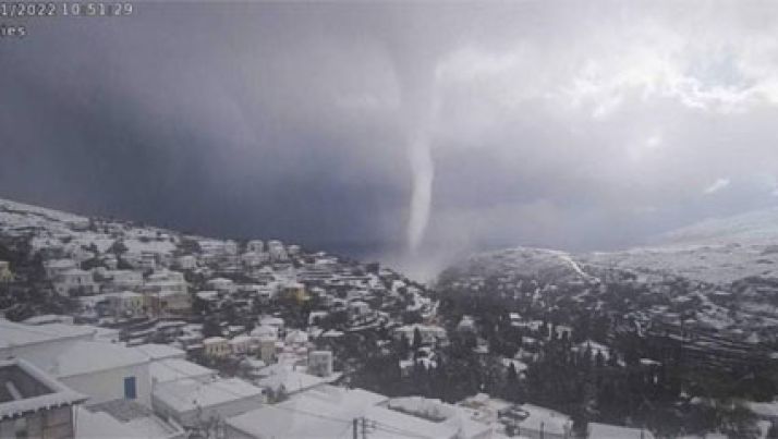 Vídeo registra momento em que tornado de neve atinge ilha grega no mar Egeu; veja