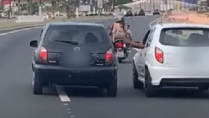 Flagrante: motoristas de carros diferentes trocam bebidas em rodovia de SC