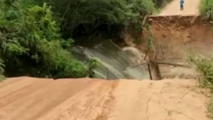 Força da água abre cratera e destrói trecho de estrada no Espírito Santo