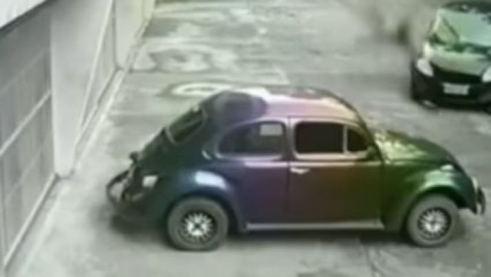 Dono de Camaro bate em poste tentando fazer zerinho em estacionamento vazio