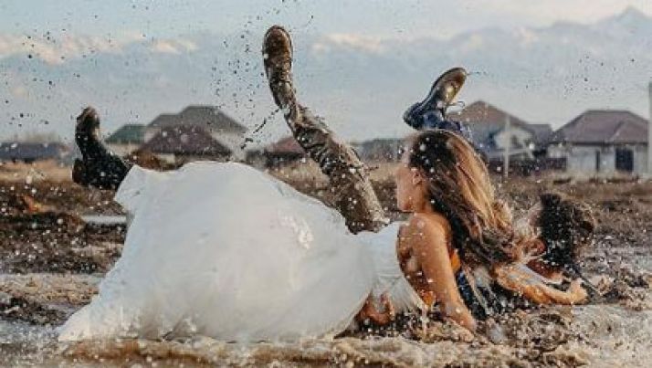 Noivos caem durante ensaio fotográfico e terminam sujos de lama; veja