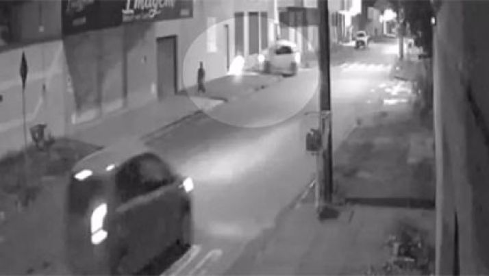Homem escapa por um triz de ser atropelado em calçada por carro desgovernado