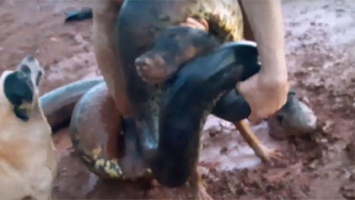 Sucuri gigante abocanha cachorro, mas ciclistas interrompem almoço; veja