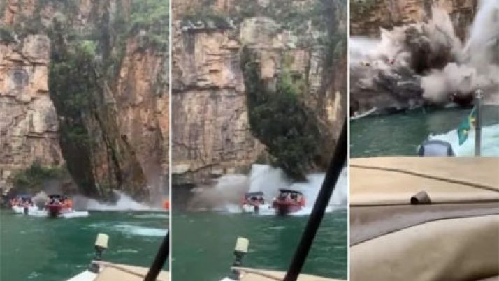 Rocha gigante atinge pelo menos três lanchas em Capitólio em Minas Gerais; veja o momento