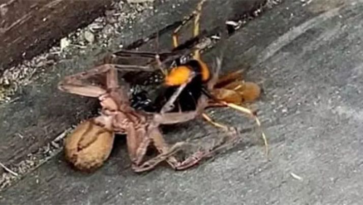 Vídeo mostra luta até a morte entre aranha caçadora e vespa gigante