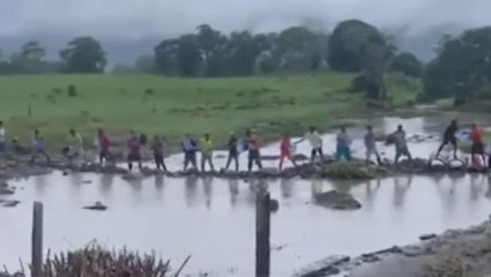 Chuvas na Bahia: Moradores fazem 'corrente' para levar doações após cratera em via