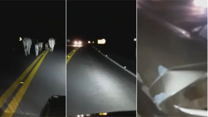 Motorista filma vacas na pista e é atingido por outro carro em rodovia