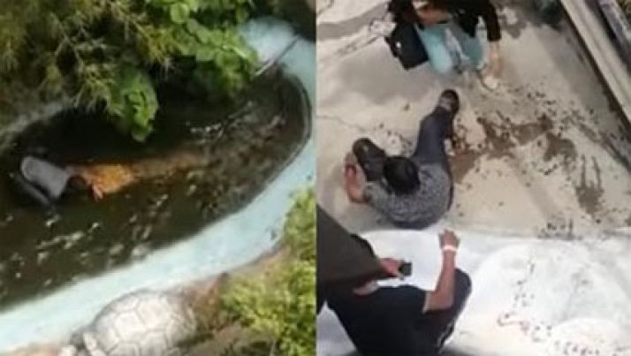 Turista confunde crocodilo com cópia de plástico e é atacado; veja