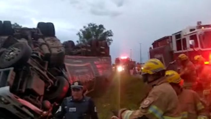 Caminhão com carne tomba e PM leva pedrada ao tentar evitar saque; veja