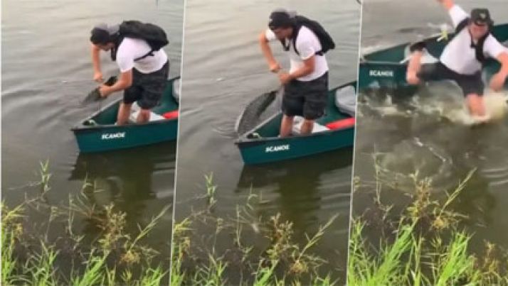 Viralizou: Pescador tenta soltar crocodilo de linha e cai na água; veja