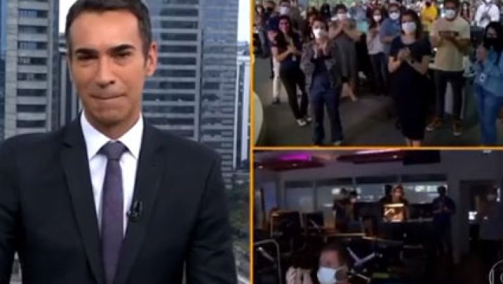 César Tralli chora ao deixar SP1 e é aplaudido por equipe; veja