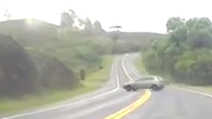 Câmera registra momento em que carro derrapa e bate no acostamento da BR-376