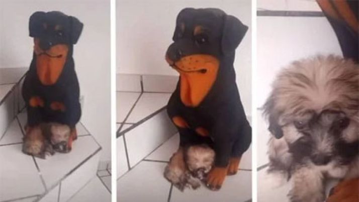Carente, cachorro adotado pensa que é filho de cofrinho em formato de cão; veja
