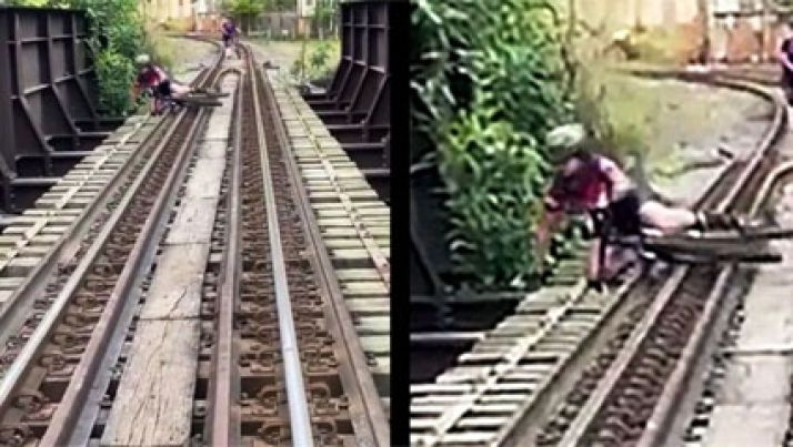 Vídeo mostra ciclista caindo de ferrovia suspensa no Rio de Janeiro; veja