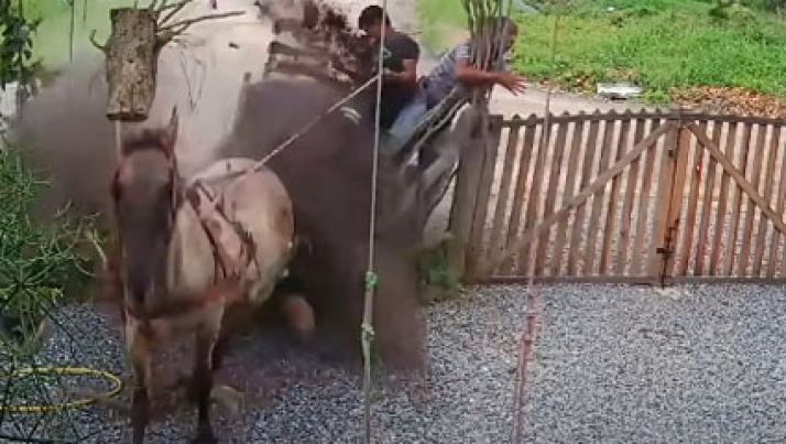 Vídeo mostra carroça desgovernada invadindo terreno de casa; veja