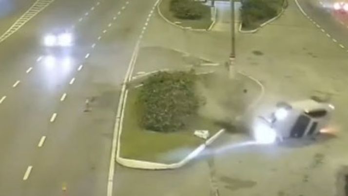 BMW capota após atravessar avenida em alta velocidade em SC; veja