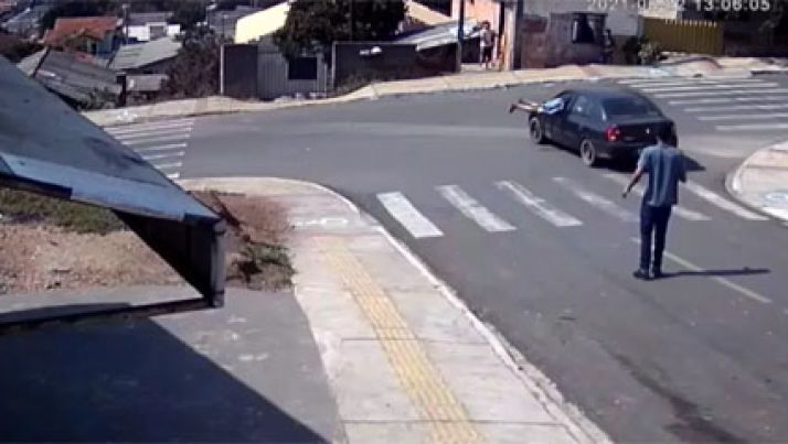 Homem pula em janela de carro desgovernado e para veículo antes de casas serem atingidas