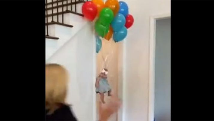 Mulher grita ao ver bebê 'voando' com balões, e desfecho surpreende; veja