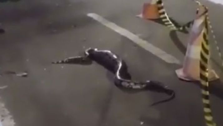 Jiboia dilacera iguana inteira e interdita pista de parque no Tocantis; veja