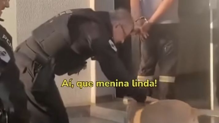 Delegado cumprimenta cão comunitário enquanto conduzia preso e reação viraliza; veja